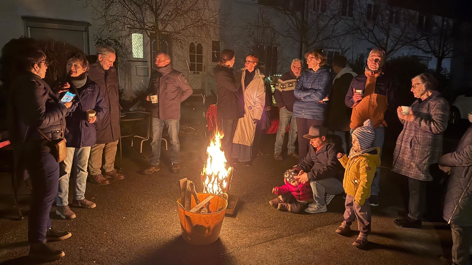Ein bisschen ist es schon Tradition, das Treffen von Nachbarinnen und Nachbarn im Schnödeneck zum 1. Advent, diesmal auf dem kleinen Festplatz in der Uhlandstraße. Bei Glühwein, Kinderpunsch und Hefezopf kam man am Spätnachmittag zusammen. Einige Anwohner hatten ihre ersten selbstgebackenen Gutsle gespendet, so dass jeder – auch bei größtem Appetit – auf seine Kosten kam. Und natürlich war Peter Hoffmann mit seiner selbstgeschnitzten Weihnachtsdeko aus Holz wieder dabei.